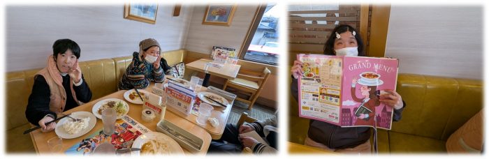 発表へ向けての昼食はから揚げハンバーグランチ!