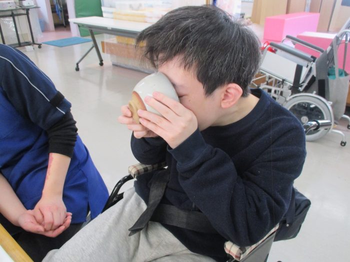 カルタ大会の後は、お茶会を行い、職員が点てたお茶を飲みながら、皆さんでまったりと過ごしました。